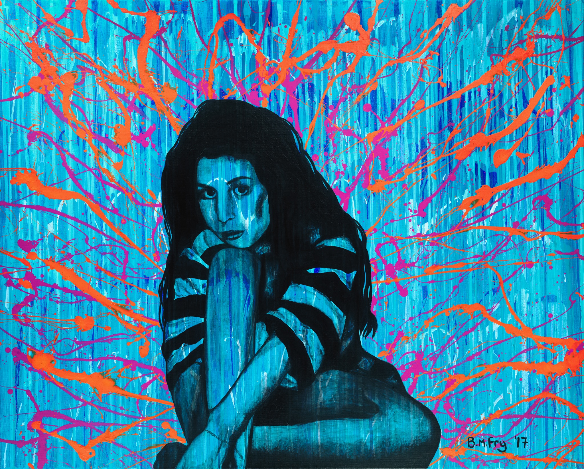 “This image of Amy came to mind, that pre-adolescent gaze, a mind that was capable of feeling such powerful emotion, yet emanating raw vulnerability at the same time. Eyes filled with the prospects of such beautiful dreams of stardom and success, and I wanted to envelope that snapshot in time, with a bold explosion of colour. An aura of true vibrancy, that was always there, and will never go away in spirit.”