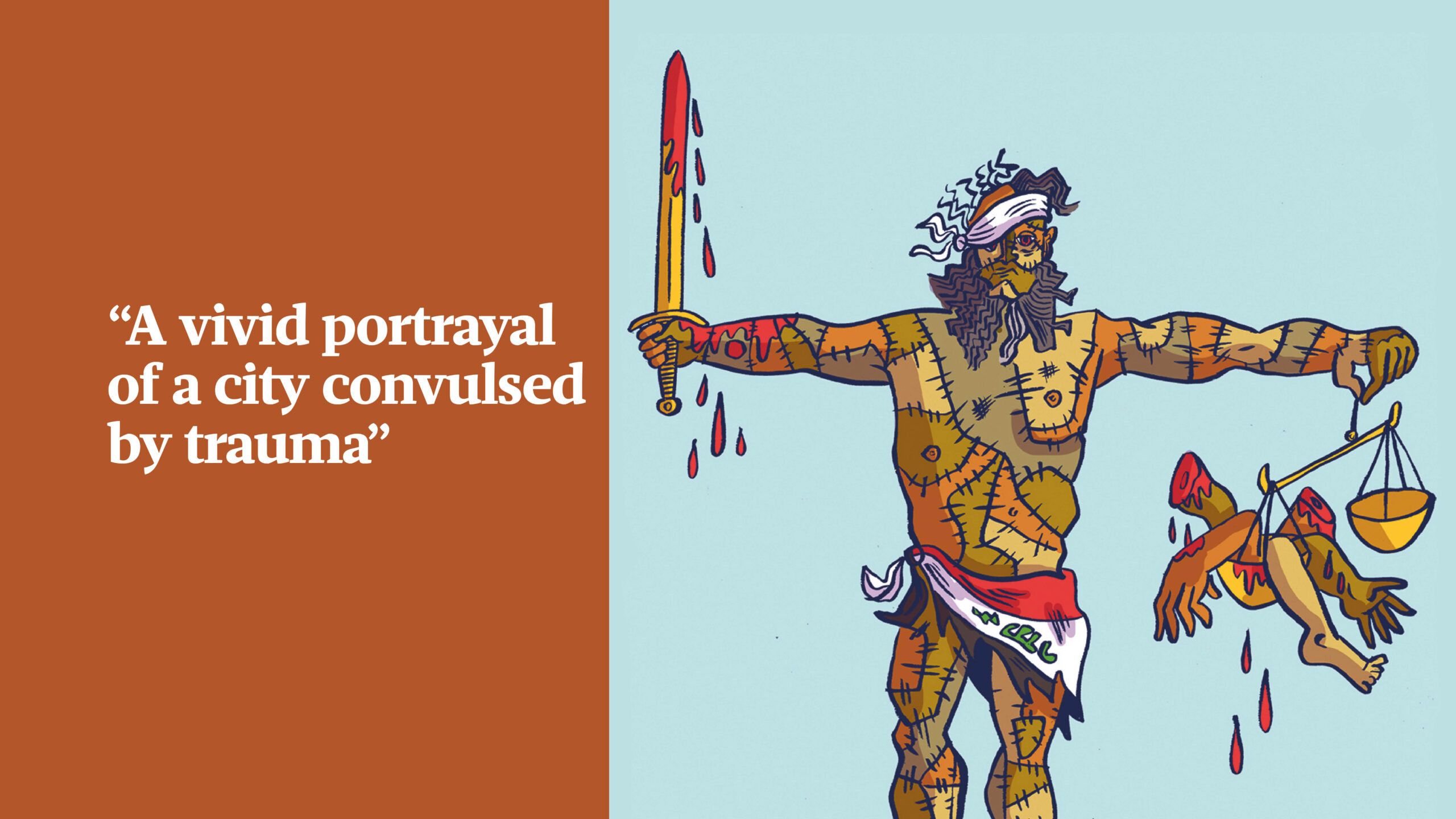 His creature – the amalgamation of many innocent people – is brought to life by the restless soul of a murdered hotel security guard. Whatsitsname is the answer to resident Elishva’s nightly prayers and she claims him as her missing son, Daniel, forced off to war 20 years earlier; but he is also the manifestation of Baghdad’s collective grief. Like a putrefying Terminator, he embarks on a mission to avenge the deaths of his component parts, even as they are dropping off him.