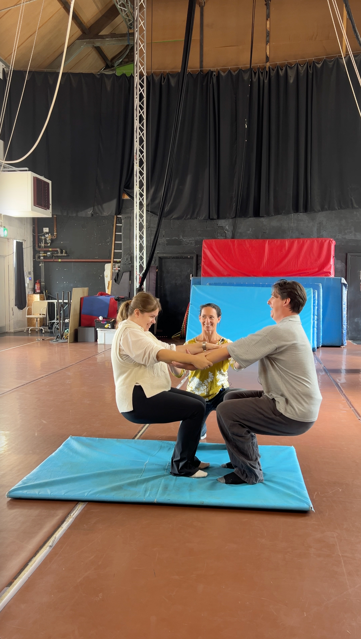 “If you throw, you have to catch.” It seems like a good rule. Except Lisa Whitmore is talking about people. Her job, as the term begins, falls into the category of simple, but not easy: convince fresh students to trust each other with their lives. To demonstrate how this begins, Whitmore, head of acrobatics at circus school Circomedia, asks her colleague: “Are you willing to be a table for me?”