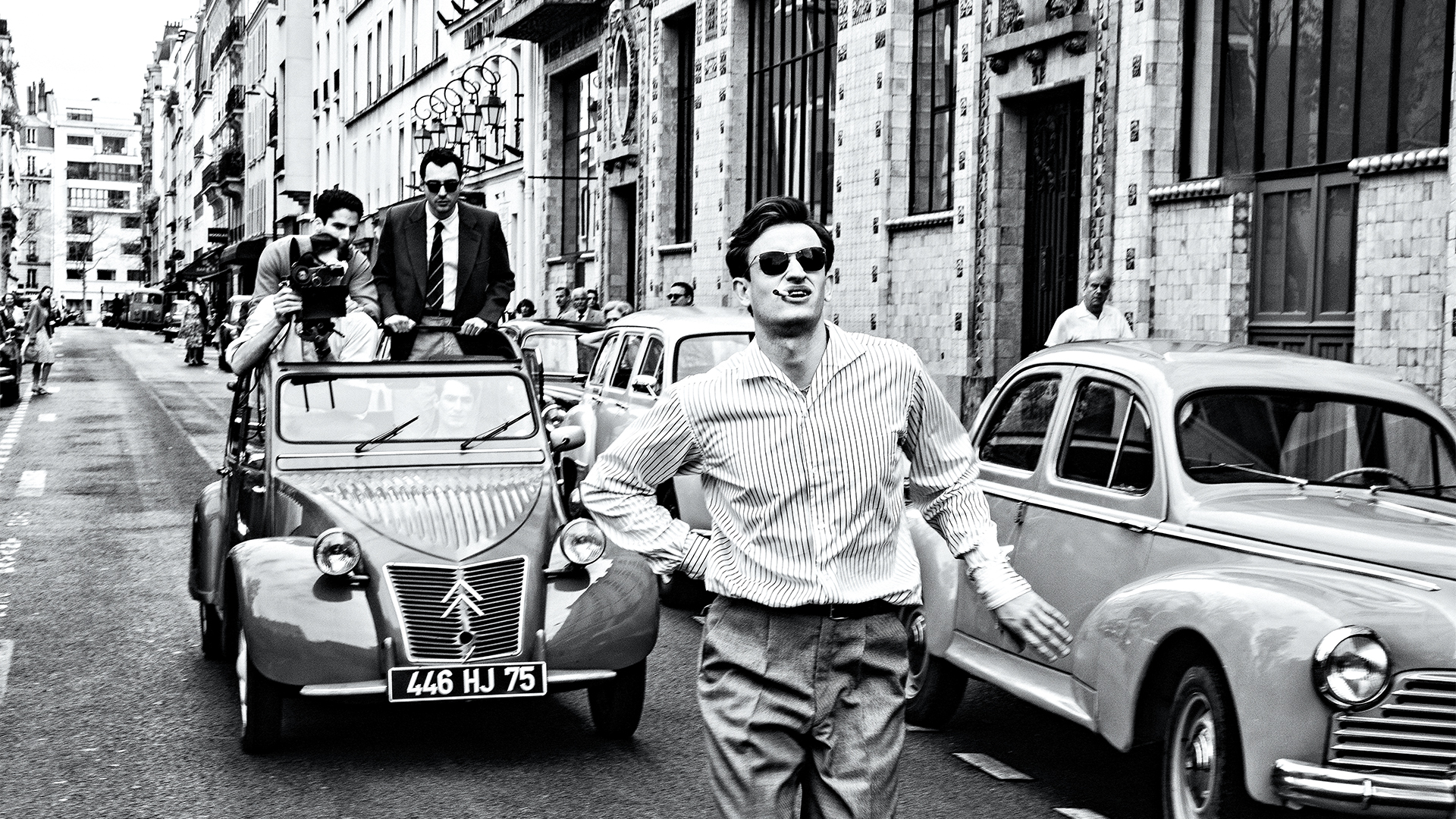 A crew is assembled, a tight 20-day shooting schedule agreed. Godard recruits screen unknown Jean-Paul Belmondo (Aubry Dullin) to be his lead and somehow gets American starlet Jean Seberg (Zoey Deutch) to sign on too, perhaps because this shoestring production is going to be so far removed from her recent bruising experiences with demanding director Otto Preminger.