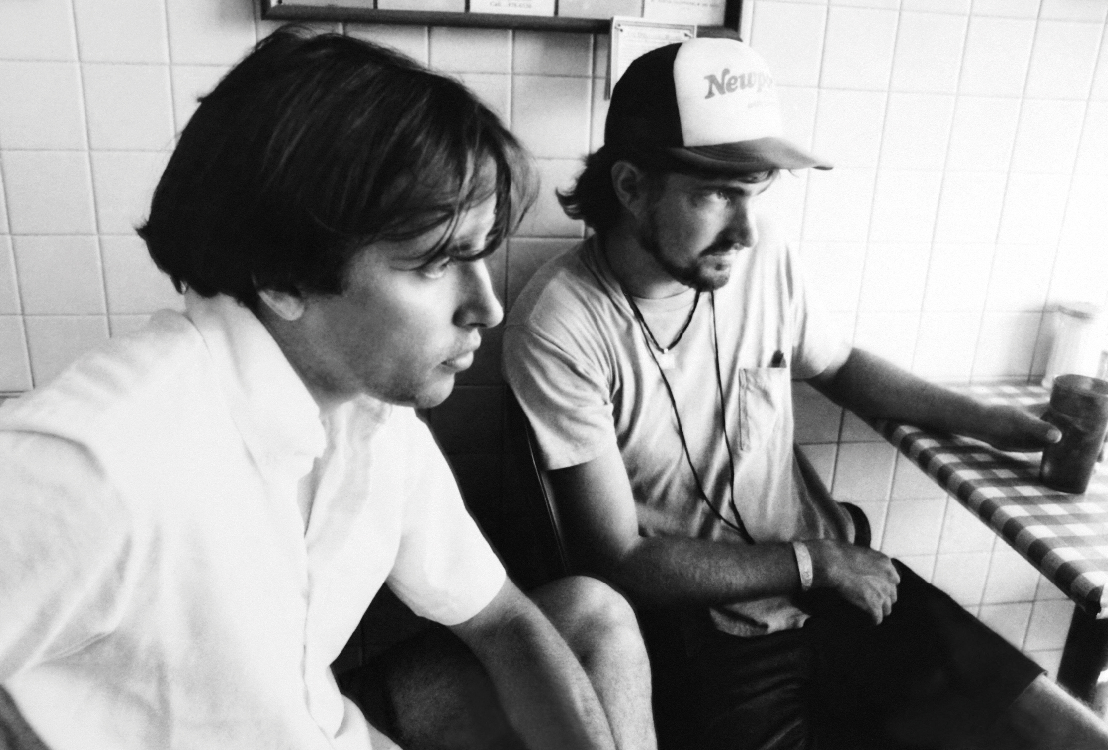1990: On the set of Slacker (left) with cinematographer Lee Daniel. Image: Everett Collection Inc / Alamy