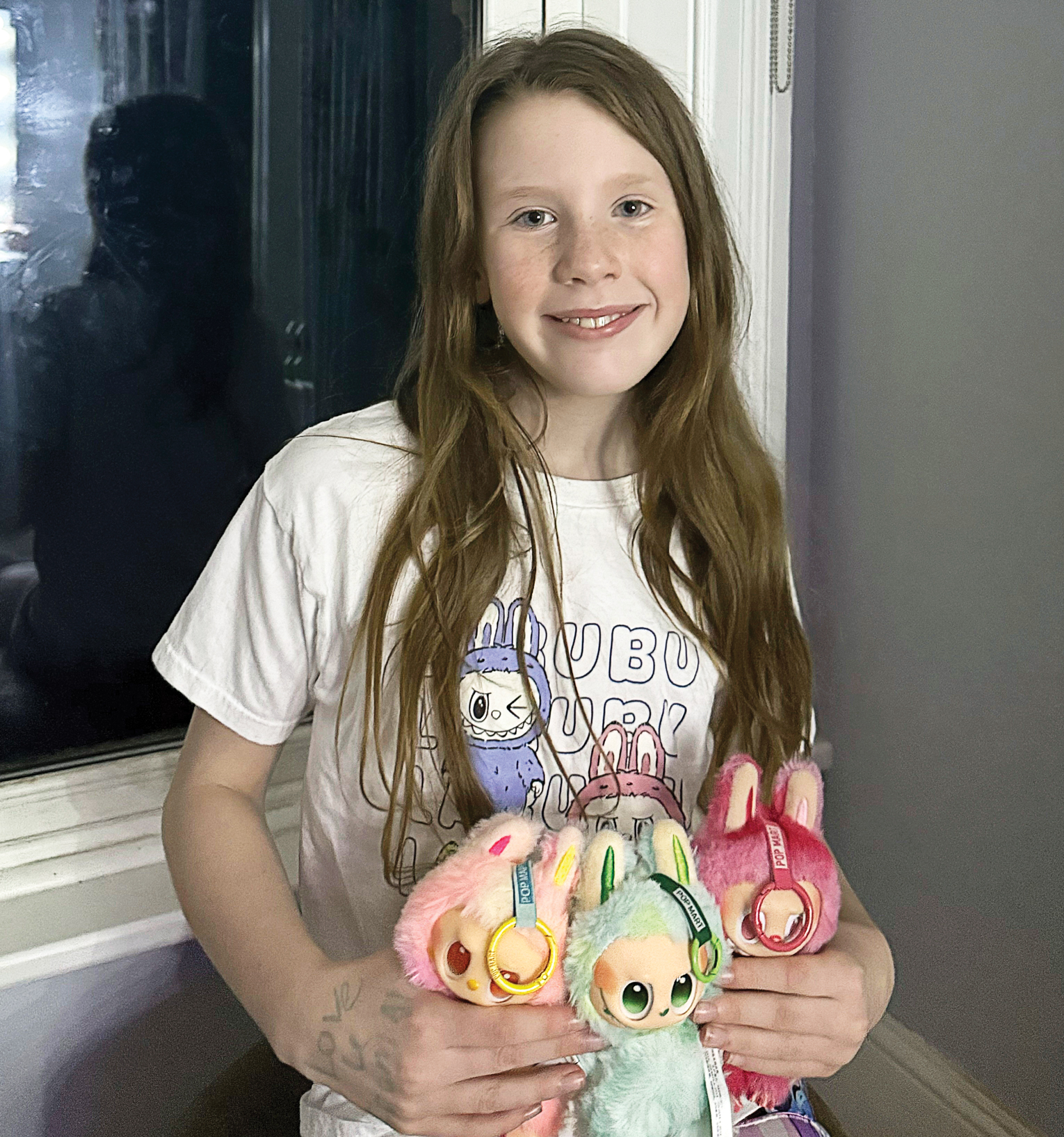 Children predictably love Labubus. Nine-year-old Sylvie says she enjoys “that you don’t know which one you’re going to get and that they come in a blind box with a little card”. She has three Labubus which she clips onto her school bag, as do most of the girls in her class. She recently made a presentation in school about her Labubus.