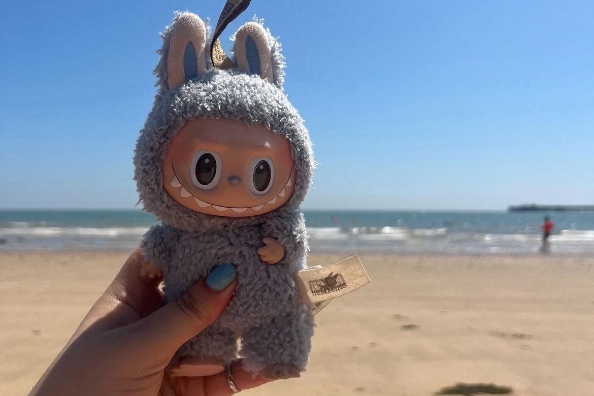One of Amaya’s Labubus at the beach. Image: Amaya