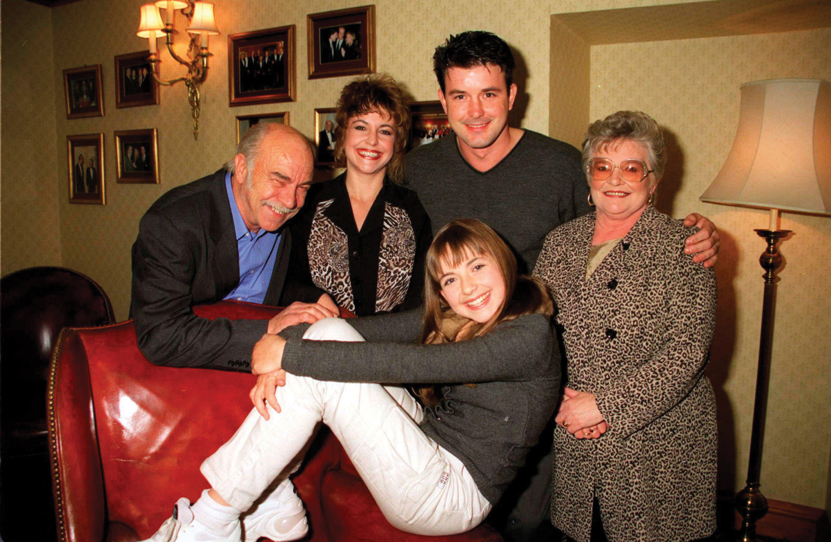 1998: Charlotte Church with her parents and Sony staff after signing to the label aged 11. Image: Dave Benett / ZUMA Wire / Alamy