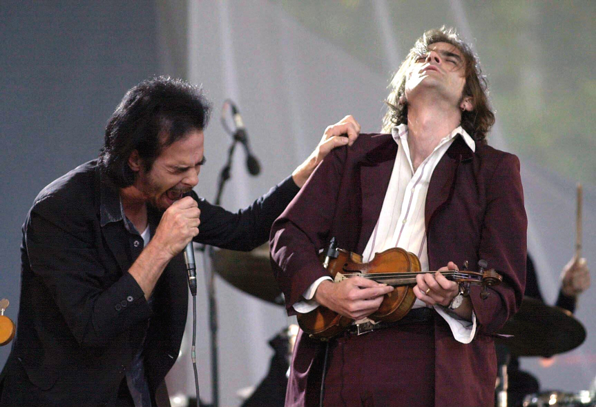 2001: Warren Ellis and Nick Cave perform with the Bad Seeds in Hamburg, Germany. Image: Action Press / Shutterstock