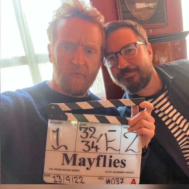 Curran and Compston on set of Mayflies. Image: Martin Compston