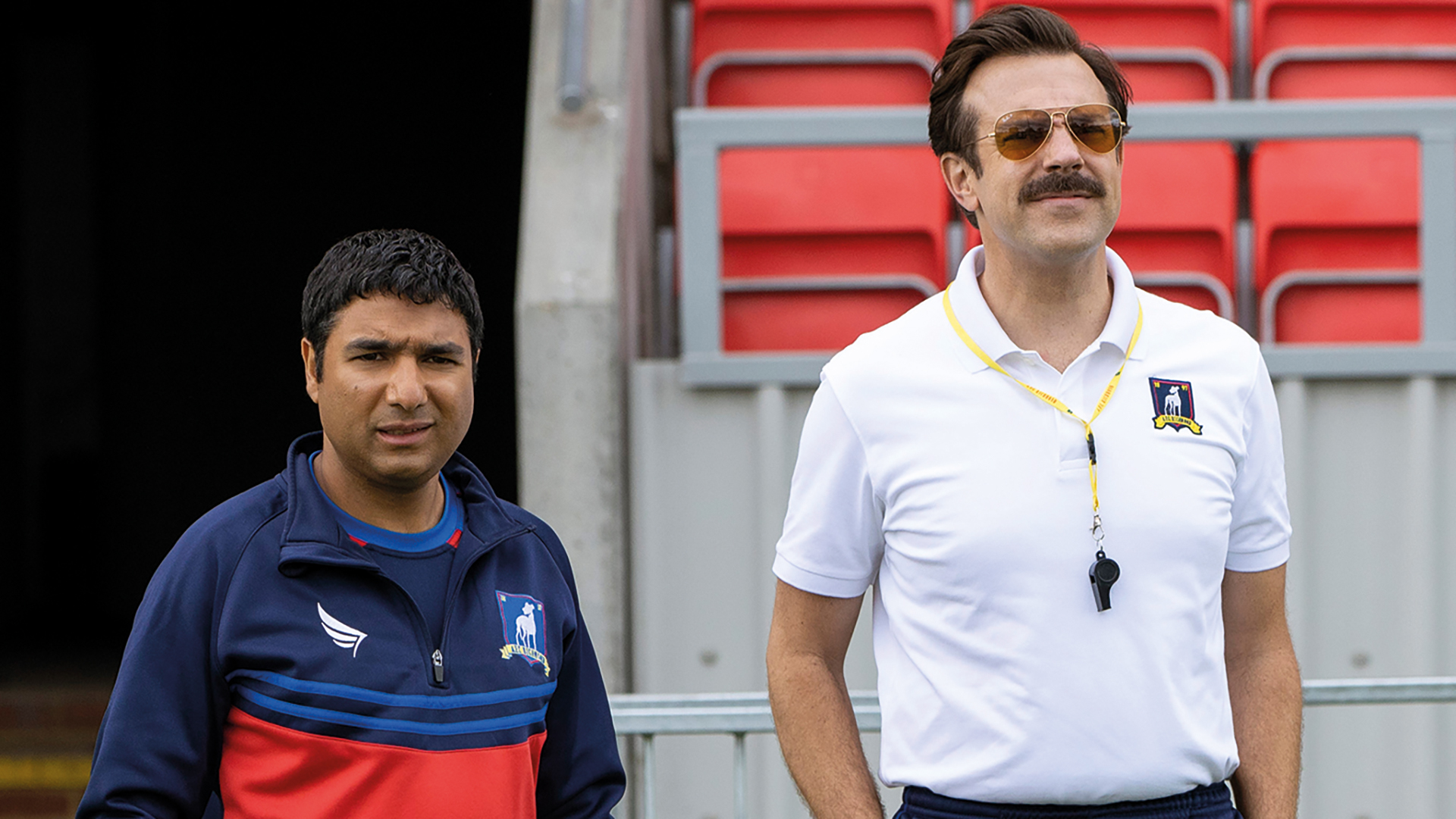 Nick Mohammed with Jason Sudeikis in Ted Lasso. Image: Apple TV