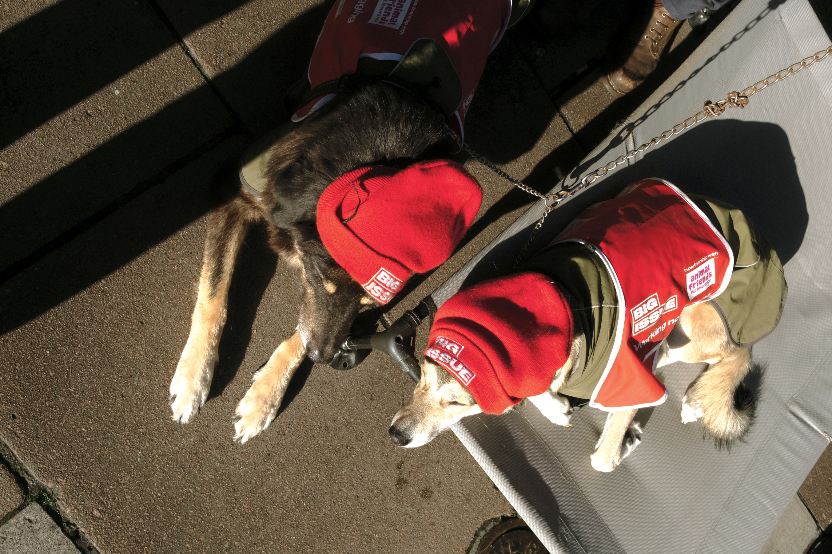 “Most people come up to see the dogs,” Ian says, laughing. “I’m not one of these sellers that goes up to people shouting ‘Big Issue! Big Issue!’ I don’t say anything. I just walk up and down, and the dogs do most of the work.”