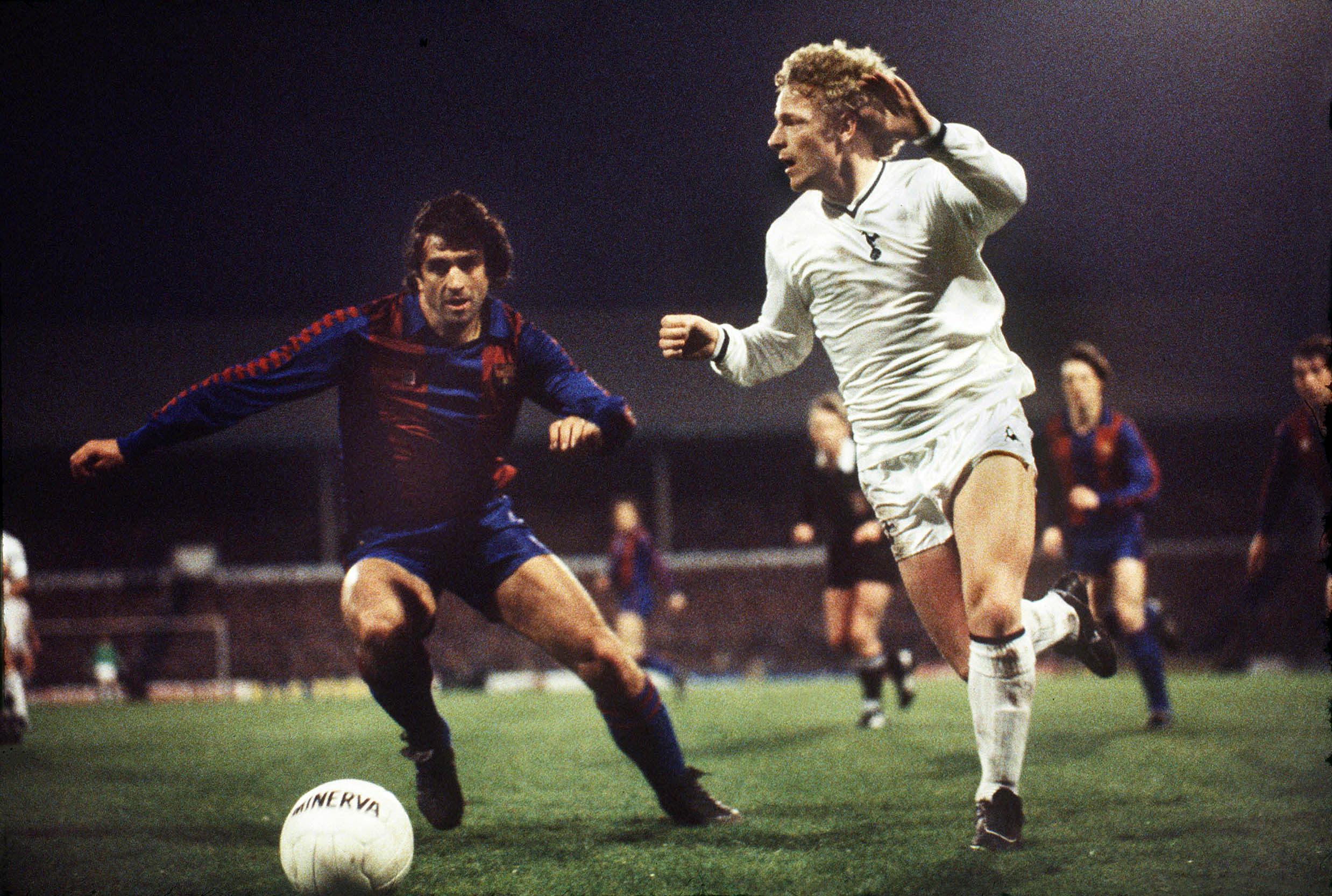 Micky Hazard playing with Tottenham Hotspur against Barcelona. Image: Colorsport/Shutterstock