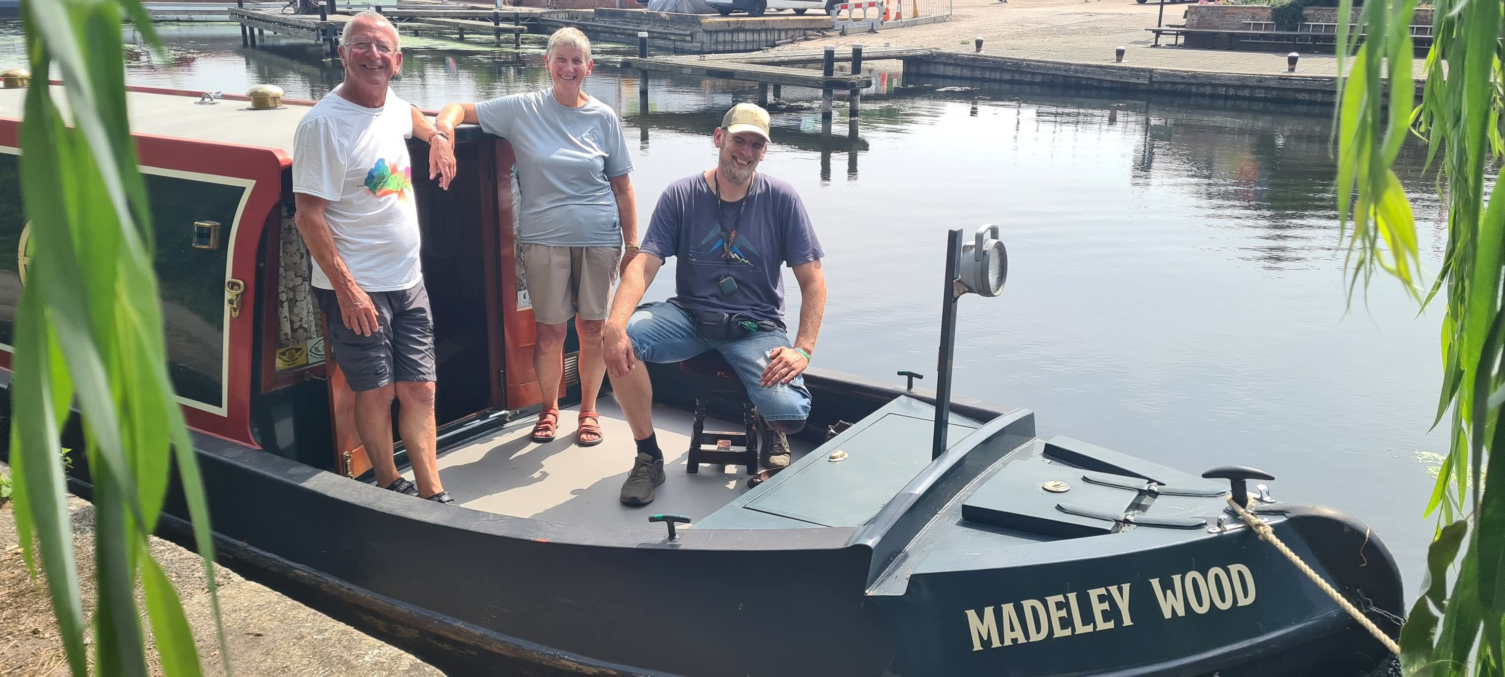 John and Barbara Lower, who donated NB Madeley Wood – with veteran Kev, who lives on her
