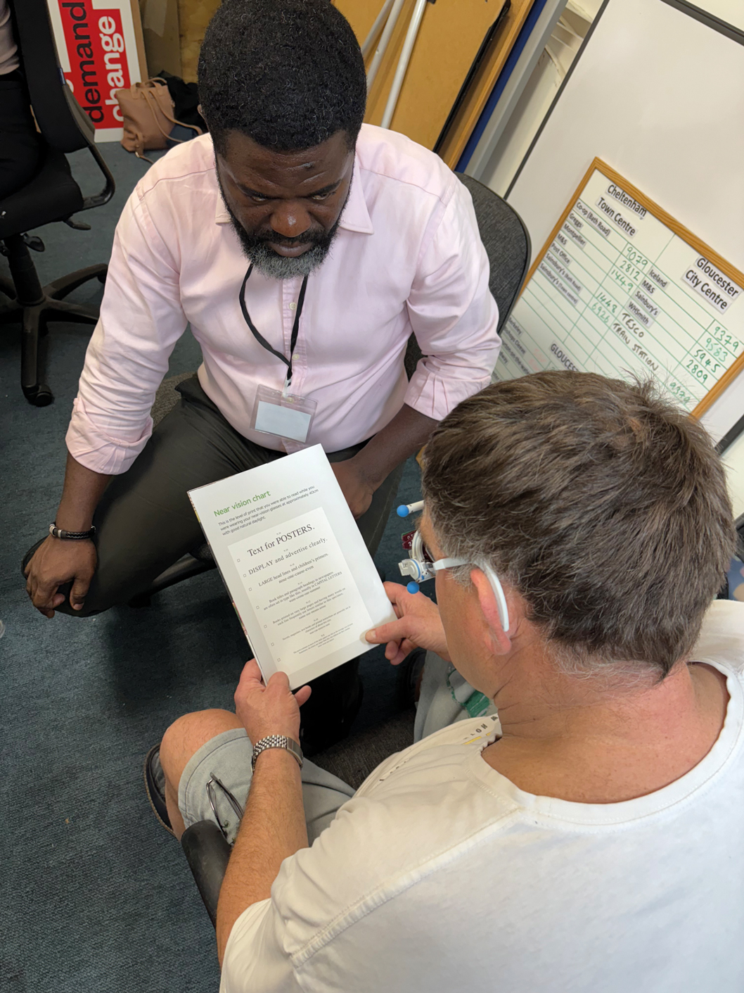 Rain hammers against the windows of Big Issue’s Cardiff office on a grey November Monday. Inside, it’s controlled chaos. Vendors arrive to collect their magazines, others head to small side-rooms. One of them has been set up as a pop-up wellness clinic for vendors. The other contains a fully functioning temporary optician, provided by Specsavers. By lunchtime, optometrist Hamzat Omo Amiebenomo will have provided free eye tests and glasses to vendors who’ve travelled from across south Wales, some of whom haven’t had proper eye care in years.
