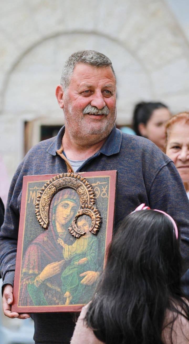 We begin our celebrations with midnight Christmas Mass, exchanging greetings afterwards. We make family visits, and the traditional meal is lamb. We prepare Gazan-style fattah, and before that, in the morning, we have soup with meat kofta and parsley. On Christmas Eve, Santa Claus visits the children, bringing gifts and chocolates. Two weeks before Christmas we light the Christmas tree, which is attended by thousands. It is a great event. Lighting the Christmas tree embodies the life of Jesus Christ for the people of Gaza and reinforces love among many.