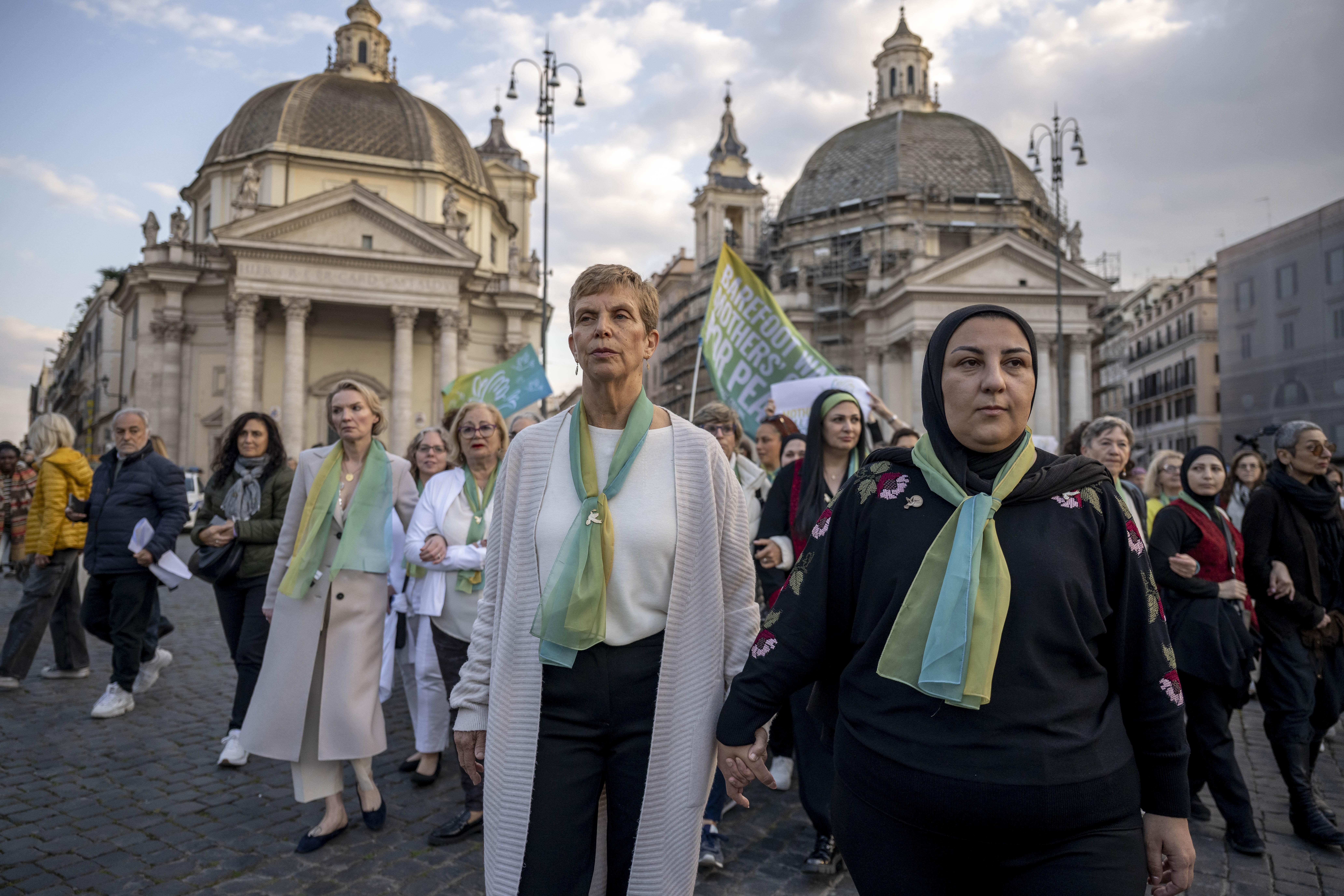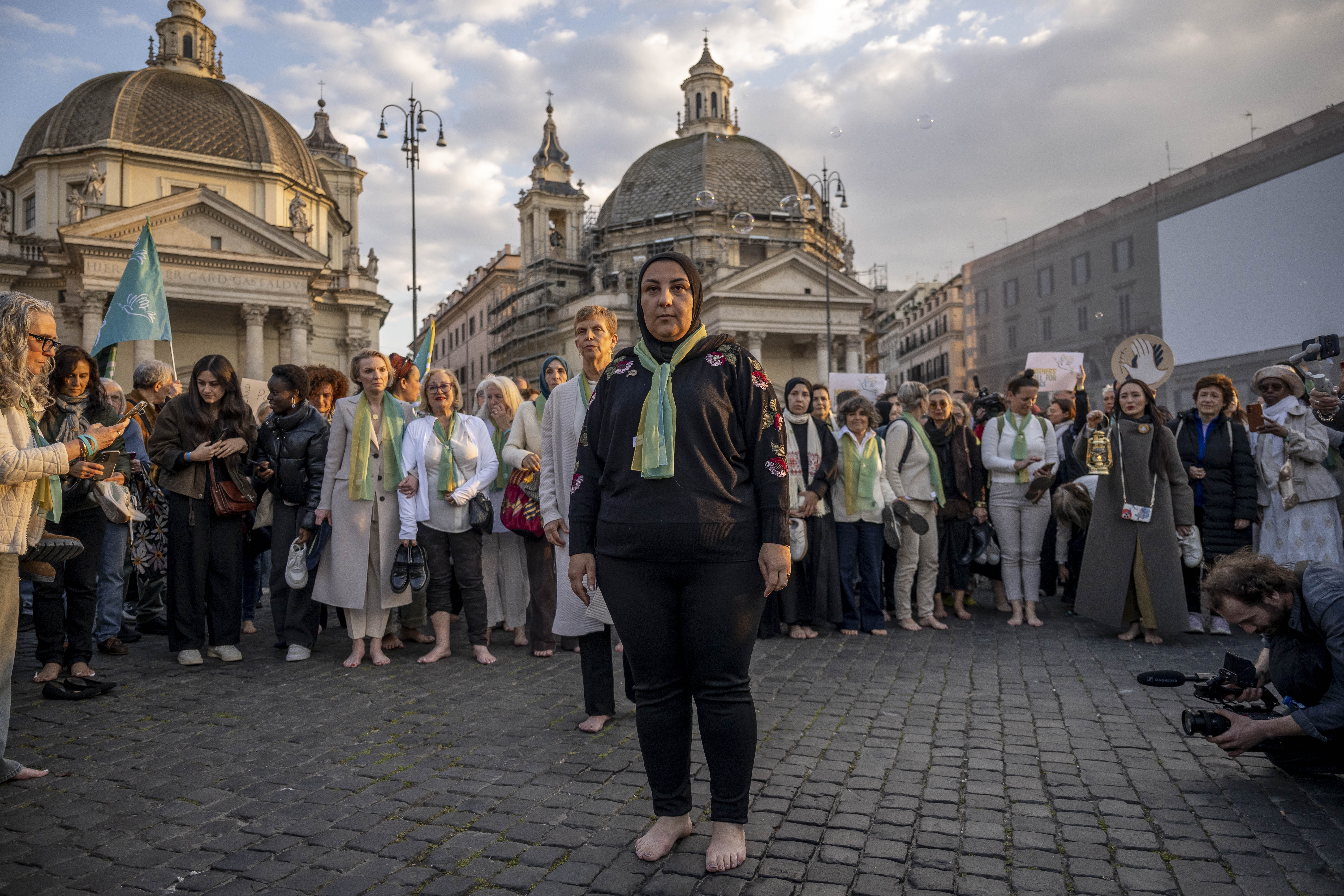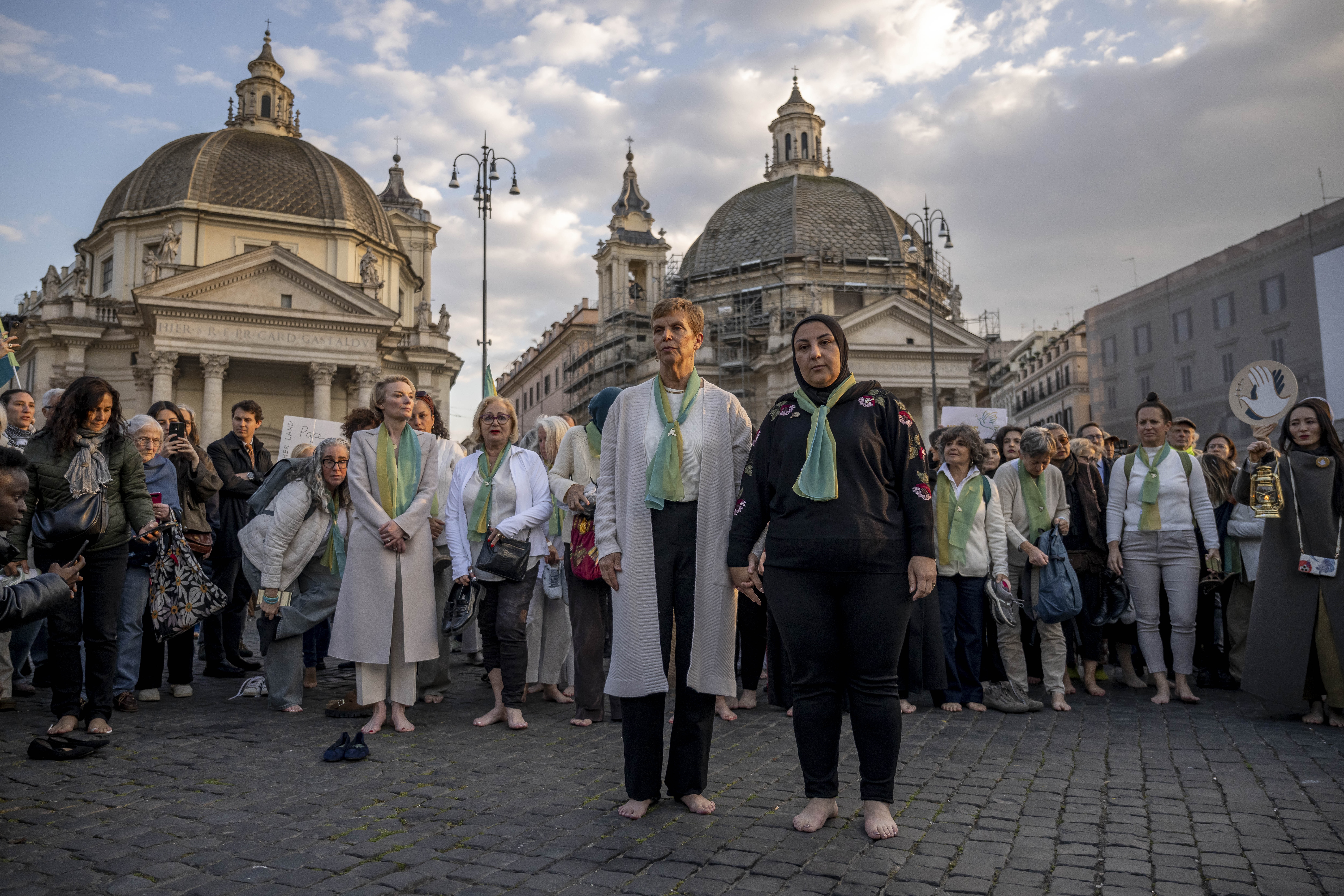 Striking photos show Israeli and Palestinian mothers walking barefoot through Rome to call for peace