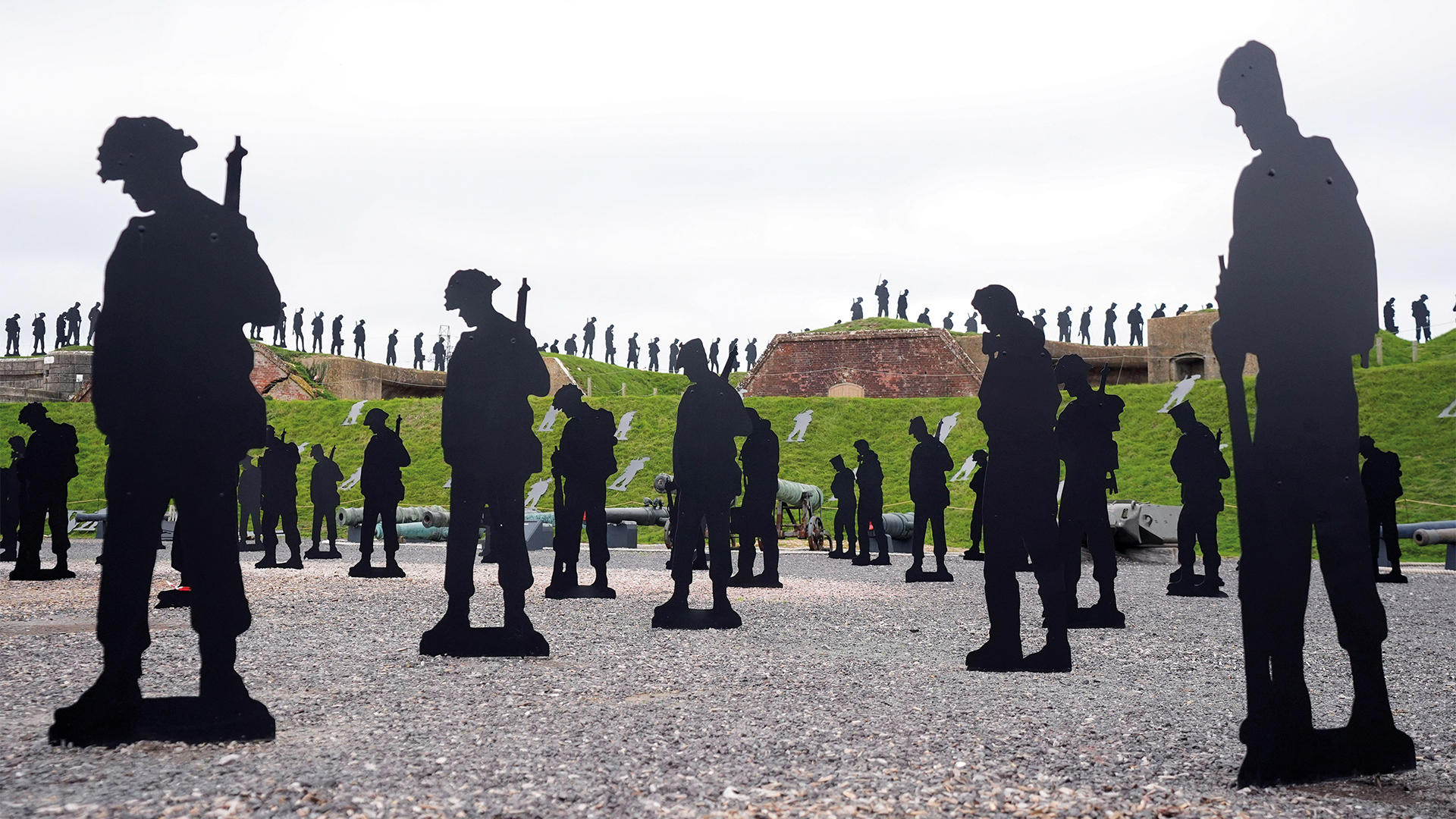 For Your Tomorrow features 1,475 life-sized silhouettes, representing the number of men under British command who were killed on 6 June 1944. The cut-outs were made from recycled advertising hoardings and hand-cut into shape by charity Standing With Giants. They were then installed across the parade ground at Fort Nelson, Hampshire. The site overlooks Portsmouth Harbour, where many of the men who died in Normandy set sail from.