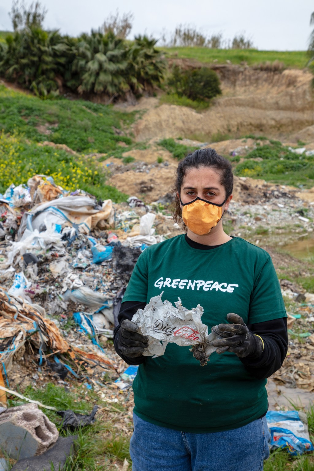 Yenidam, Seyhan, Adana Province, Turkey. Investigation into plastic waste that is dumped and burned in Turkey. The team found plastic packaging from UK, German and global food and drinks brands and supermarkets. Image credit: Greenpeace