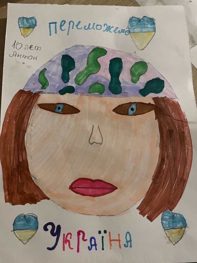 Despite the desperate circumstances, people sheltering in Kharkiv remain defiant. As shown in 10-year-old Antin’s drawing which proclaims: “We will win! Ukraine!”. Image: Depaul International
