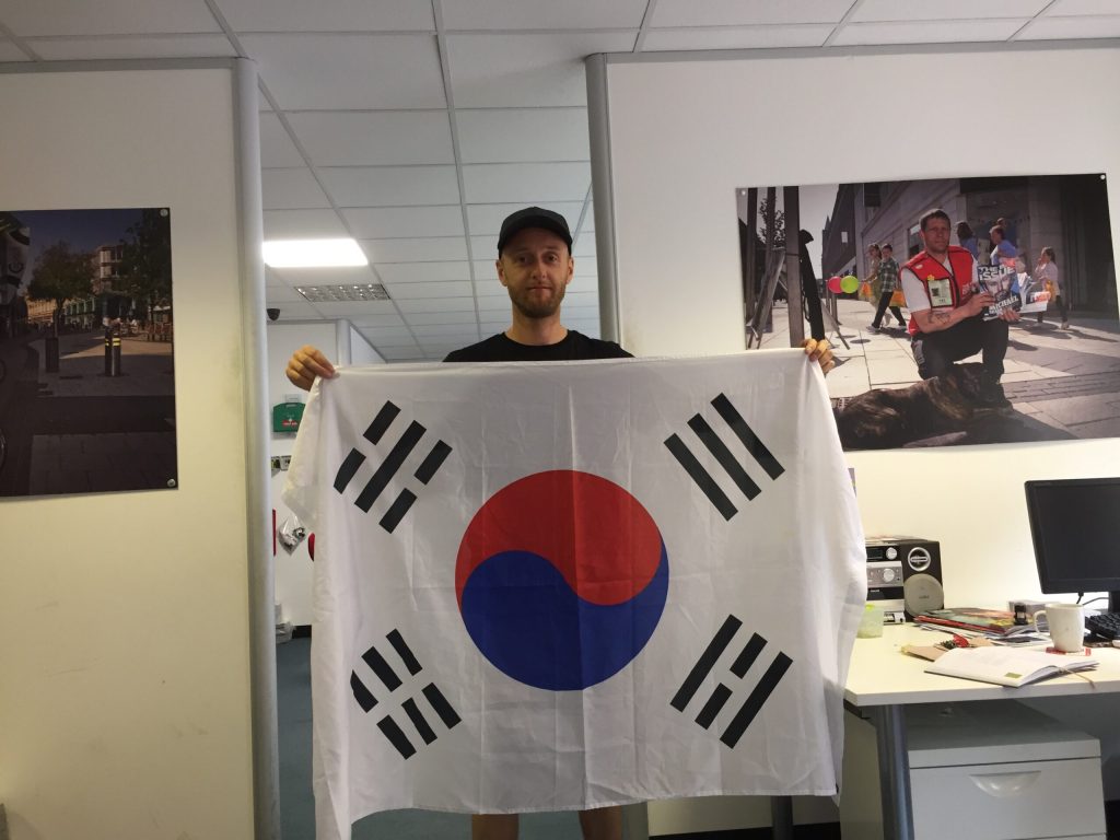 The South Korean flag acted as an incentive for Tom to go to the tournament to support his new friends in their clash with Italy.