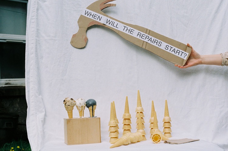 What would a leaking ceiling ice cream look like? Harry Schone and Eva Grigelionyte have crafted a quirky protest in their row with their landlord and letting agent 1st Lets. Image credit: Ieva Grigelionyte