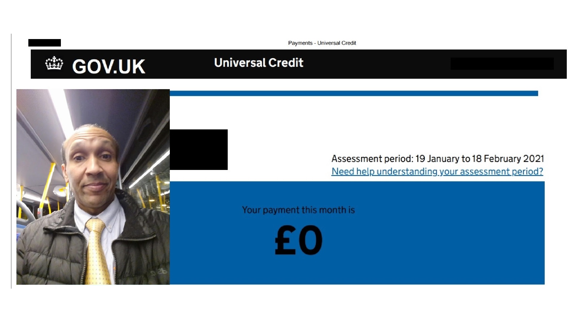 After receiving an initial payment of £300 in October, Das found out he had fallen foul of the benefit cap in November when his statement read £0.