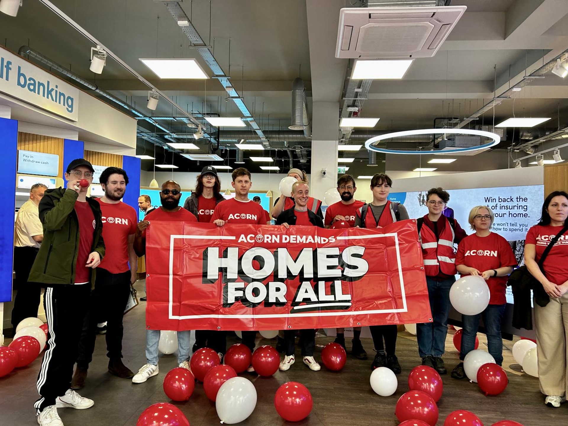 Activists from the Acorn community union flooded 30 TSB branches across the UK on 18 May, setting up tents inside branches and forcing some to close early for the day.