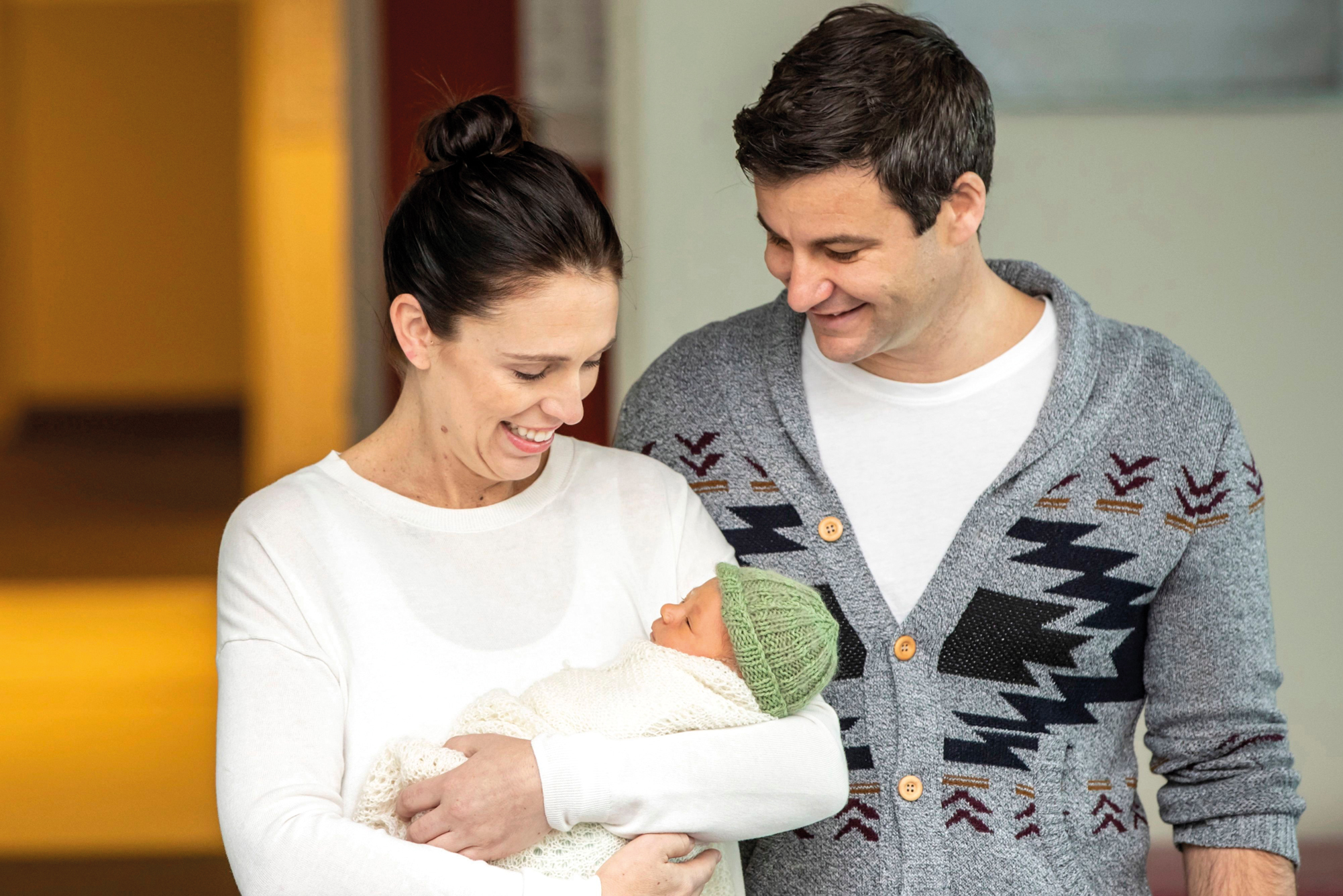 Jacinda Ardern in 2018, with partner Clarke Gayford and new baby daughter Neve. Photos: DAVID ROWLAND / EPA-EFE / Shutterstock