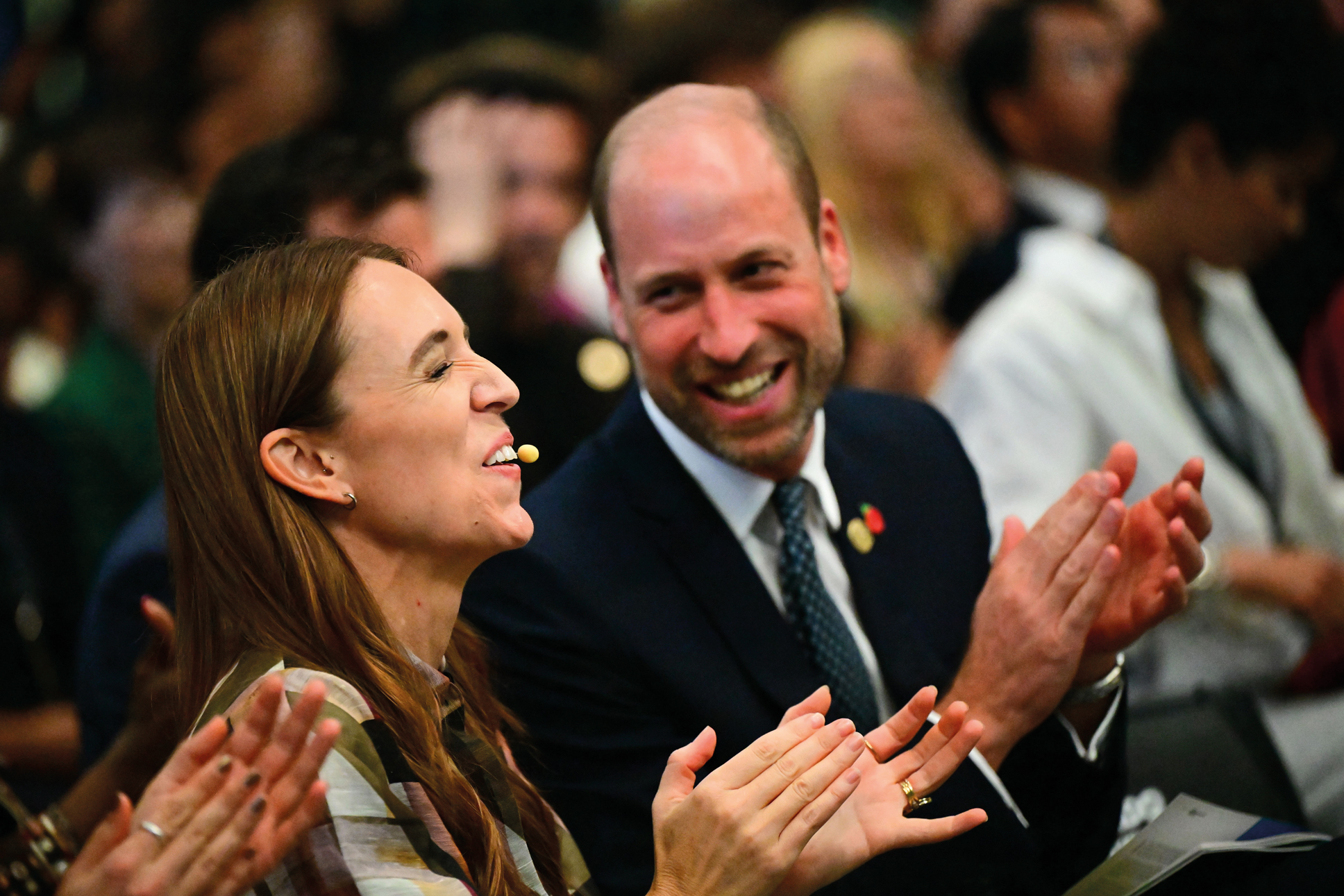 Jacinda Ardern shares a joke with Prince William at the Earthshot Summit in Rio de Janeiro, 2025. Image: Victoria Jones / Shutterstock
