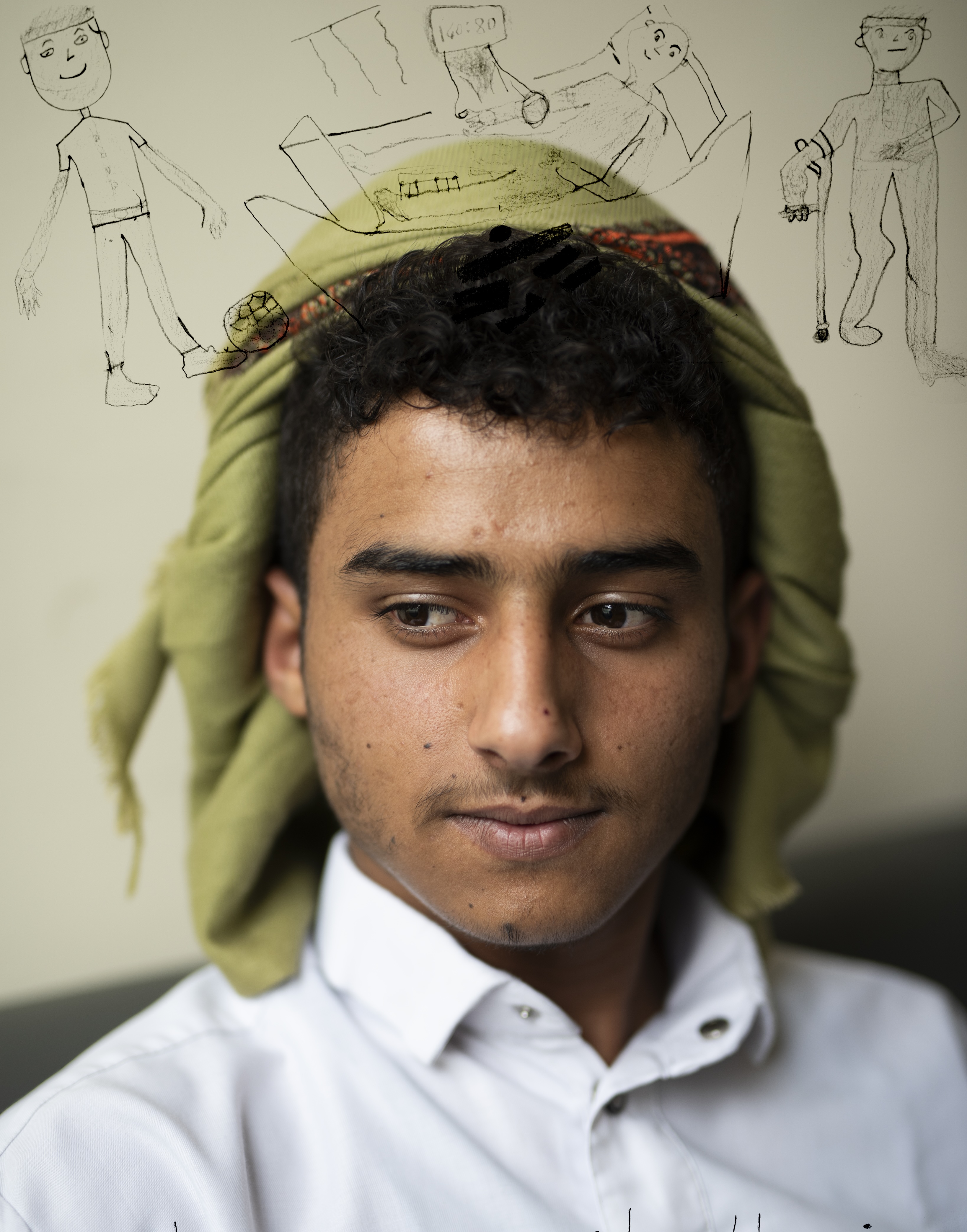 Hossam is a 17-year-old patient from Yemen whose legs were injured in an explosion. Image: Rehab Eldalil