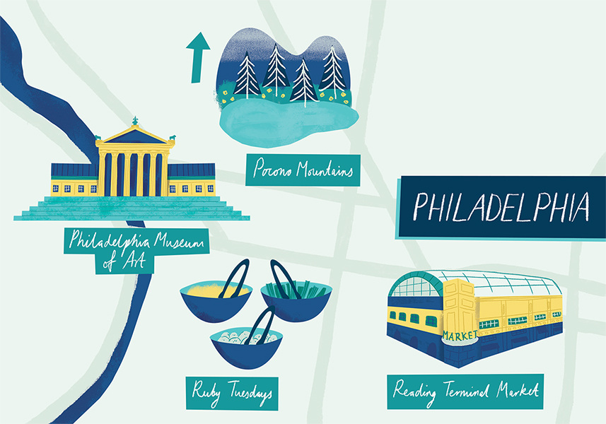 The all-you-can-eat buffet at Ruby Tuesday is my favourite. Also, at Reading Terminal Market, you can get any food you want. You can get a drink, watch the games, everything you desire is there.