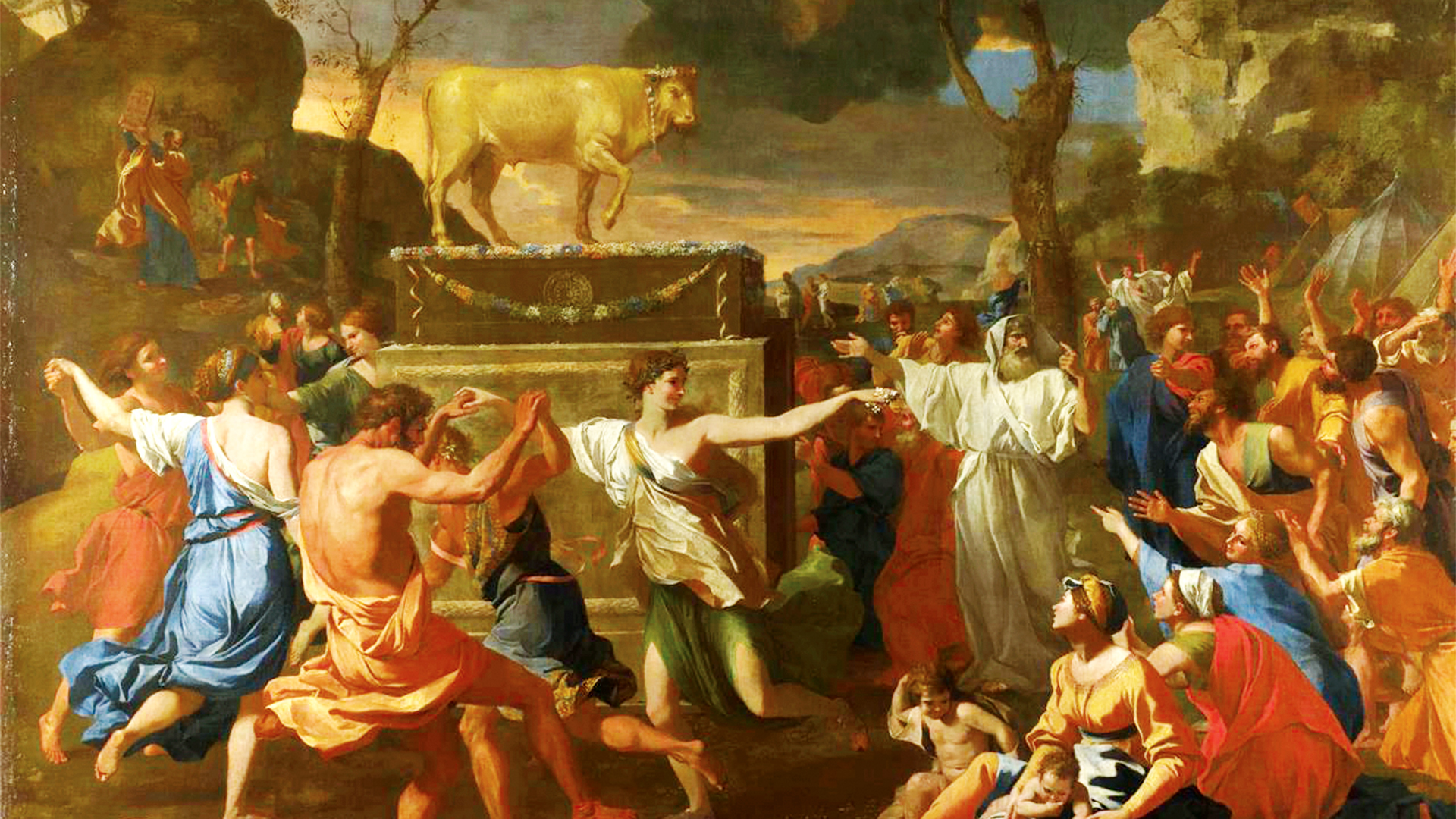 The human ability to strain at a gnat and swallow a camel, in other words to get our priorities wrong, is as old as the hills. One of the greatest examples to me in art is Poussin’s painting called The Adoration of the Golden Calf. If you get the chance, go to the National Gallery in Trafalgar Square and take a good look at it.