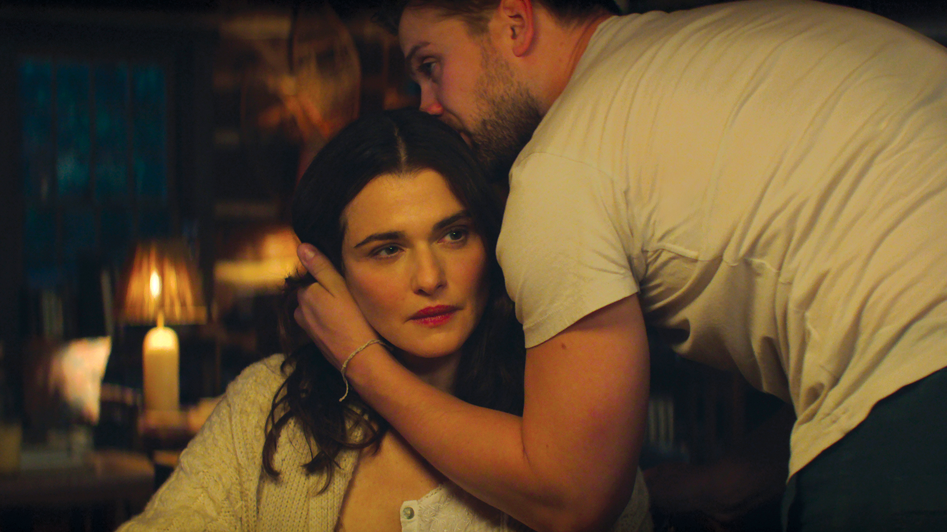 Vladimir tells the story of an unnamed English Literature professor played by the stunning 56-year-old Rachel Weisz, who looks about 28. She wears beautiful silk shirts, has a beautiful house and is so sensual that she seems to be constantly on the verge of sliding off her chair. She soon starts doing lots of rude things in her chair when she meets her new colleague, hot new professor and young author Vladimir Vladinski (go-to British hunk Leo Woodall).