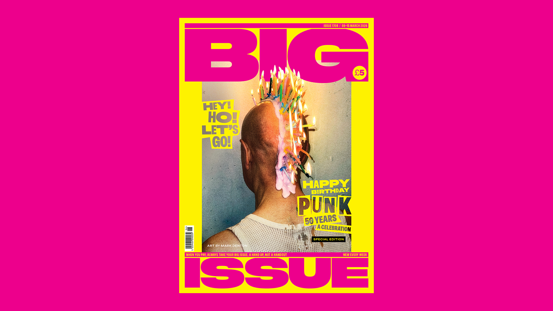 Renowned artist Mark Denton, director of the award-winning creative agency COY!, has created new striking cover artwork for the special edition – a punk-inspired Mohican formed entirely from birthday candles, dramatically set alight for the photo.