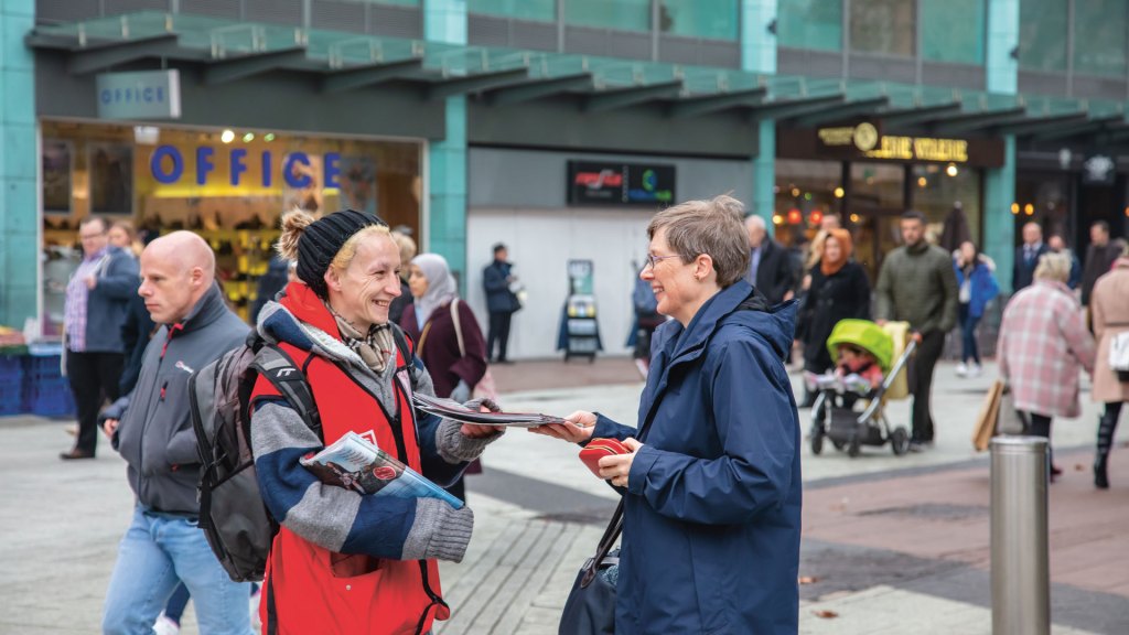 This is a good pitch, it’s quite busy and on rugby days it’s wicked. I’ve got a few regulars but it’s mostly passers-by. Selling The Big Issue has made a big difference to me. The distribution staff are brilliant, they really go out of their way for me. I’ve been selling it for about a year now and I’m getting a bit more confident. Confidence is something I’ve really struggled with in the past. It was frightening at first and it’s still frightening on days. You feel exposed but the good people outweigh the bad. The ones who shout at you. But everyone gets it hard some days.