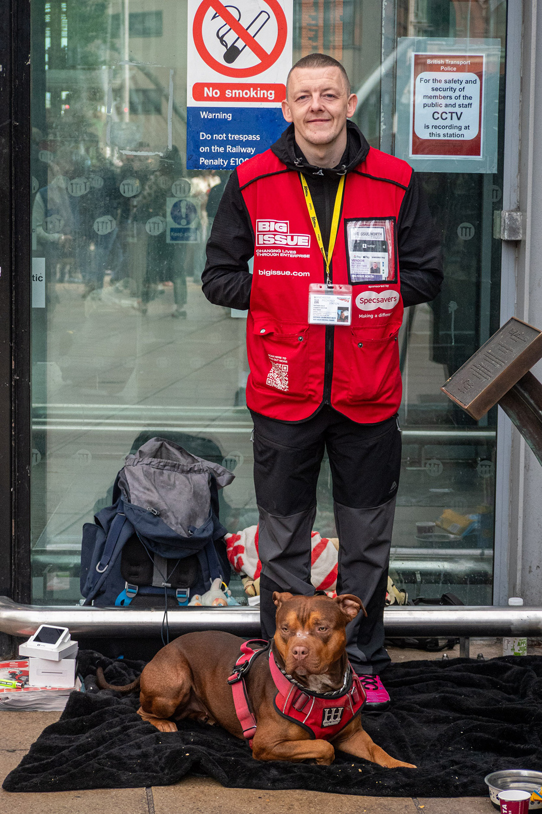 We’re living in a hostel at the moment. We were supposed to be there for four weeks, but we’ve been in there now nearly 15 weeks. I was homeless for almost a year, and I spent most of my time in Blackpool in hotels because the council wouldn’t help, but then we got the help we needed. I’ve been housed since May, but we’re waiting for permanent housing. I tell all my regulars, I’m trying to save up for a camper van so I can travel the UK with my dog.